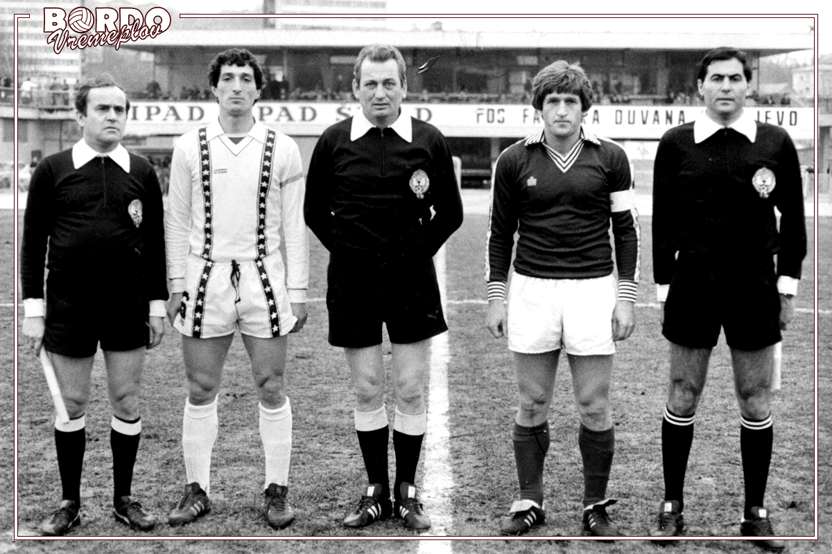 Kapiten Gradančić i Sušić sa sudijom Pavićevićem i pomoćnicima